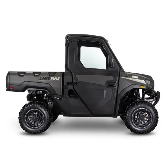 Designed with full cab protection and equipped with glass front and rear windshields, heater/ventilation, wipers, and solid side doors with sliding windows, the Landmax Pro ensures year-round usability in all conditions. Inside, you'll find a 4.3” TFT display, adjustable seating, multiple power outlets, and a 4500lb front winch as standard.